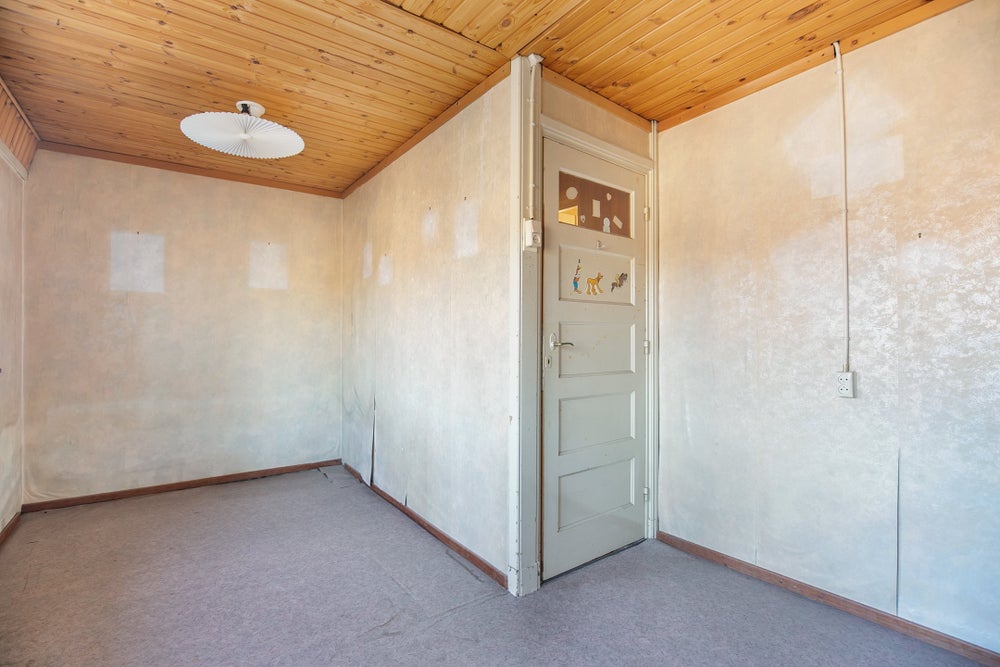 Overloop toegang tot twee slaapkamers. Relatief eenvoudig kan een derde slaapkamer worden gerealiseerd. Verdiepingsvloer van hout.
