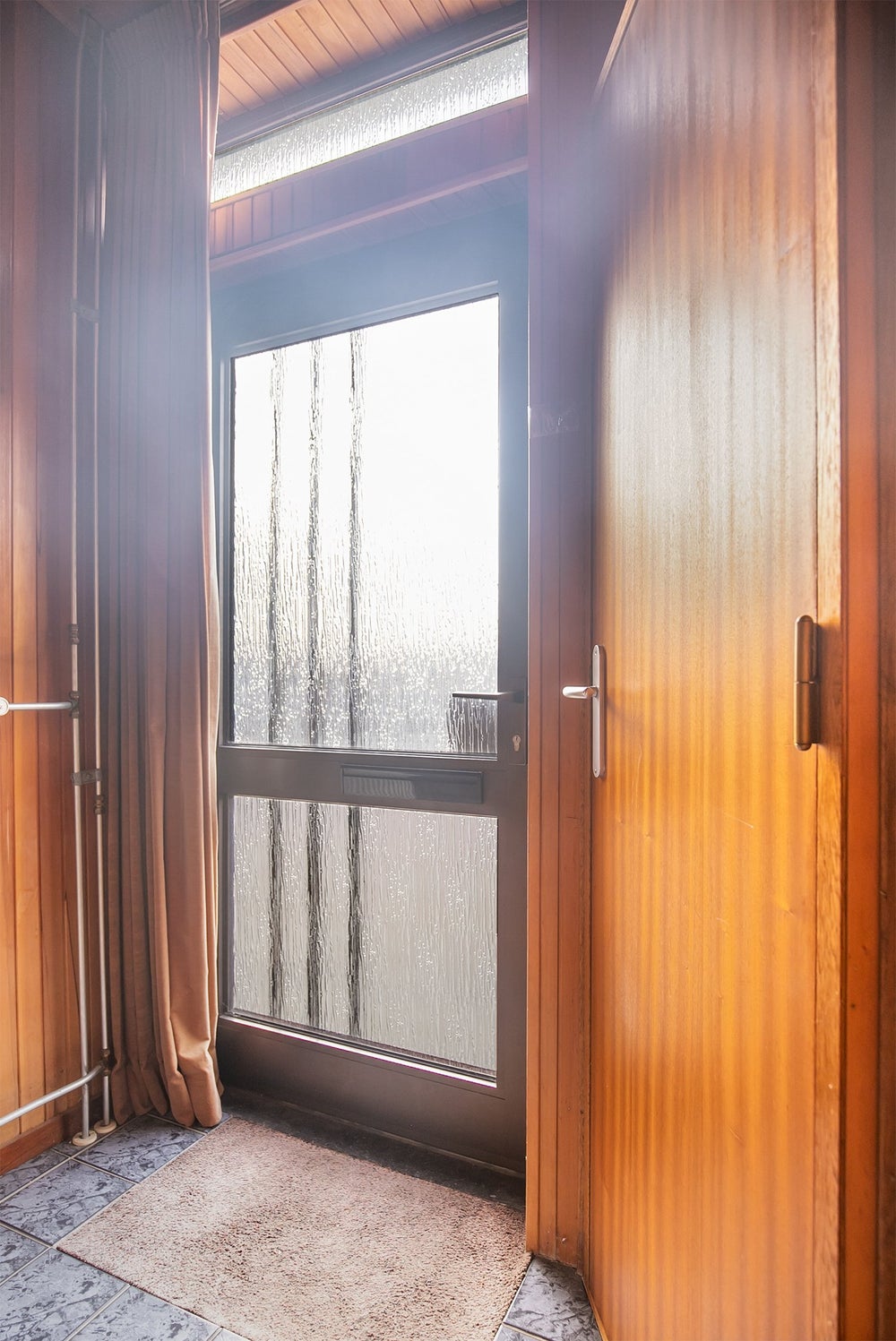Hal (plavuizen) met doorgang naar woonkamer en opgang naar verdieping. Aluminium buitendeur. Meterkast vier groepen en aardlekschakelaar, slimme meter(s) nutsaansluitingen.