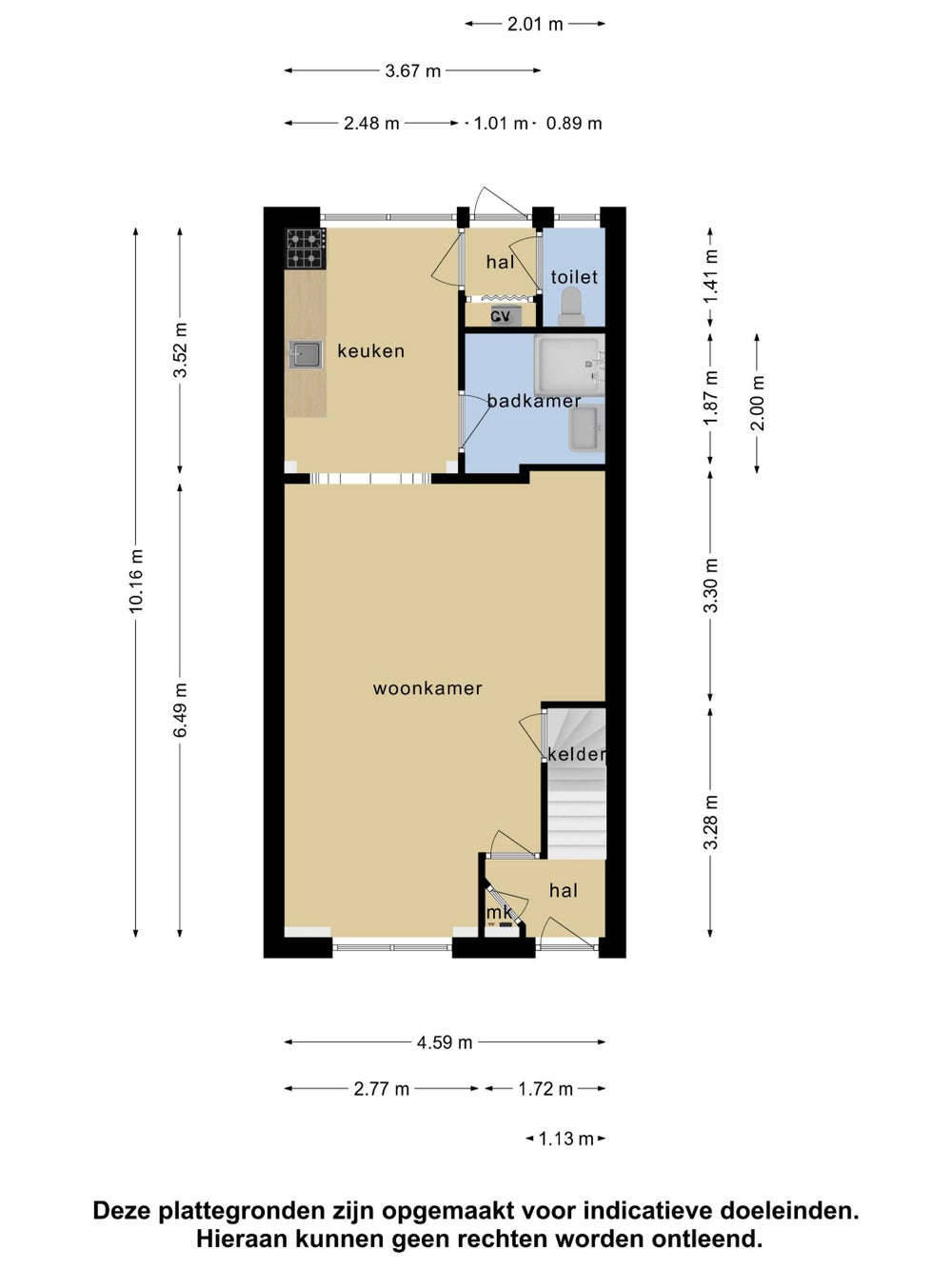 Provisiekelder ca 5,6 m2 gelegen onder hal/trap.